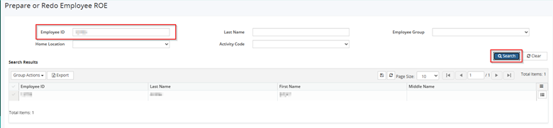 PAYROLL > ROE > PREPARE OR REDO EMPLOYEE ROE