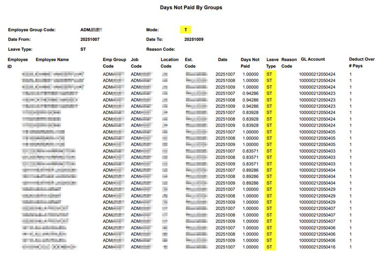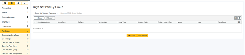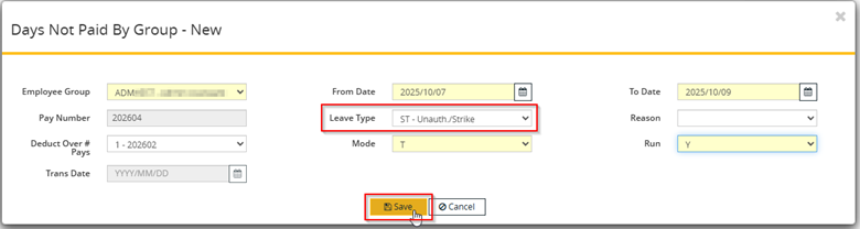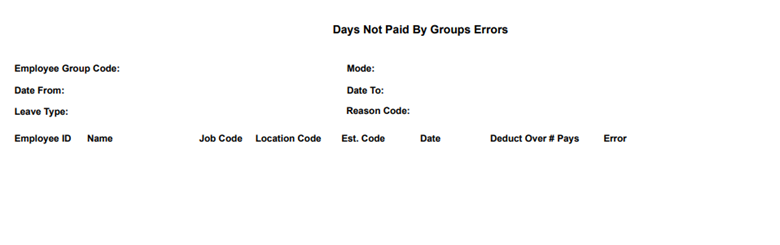 PAYROLL > PAY INPUTS > DAYS NOT PAID BY GROUP