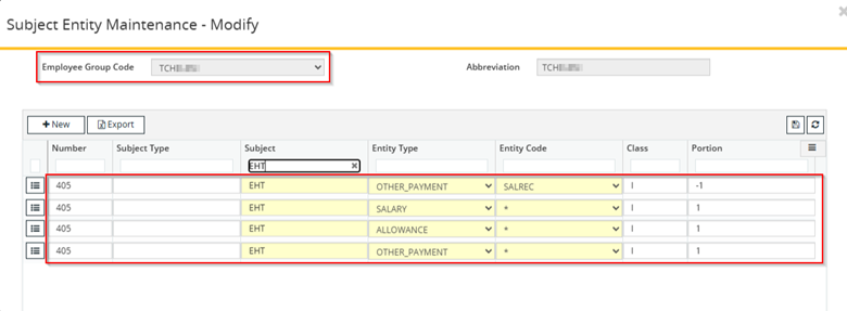 PAYROLL > GROUP DATA > SUBJECT ENTITY MAINTENANCE > TCHELEM >> Subject = EHT